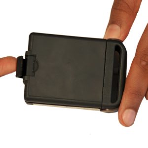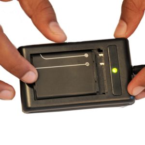Insert fully charged battery into the tracker.